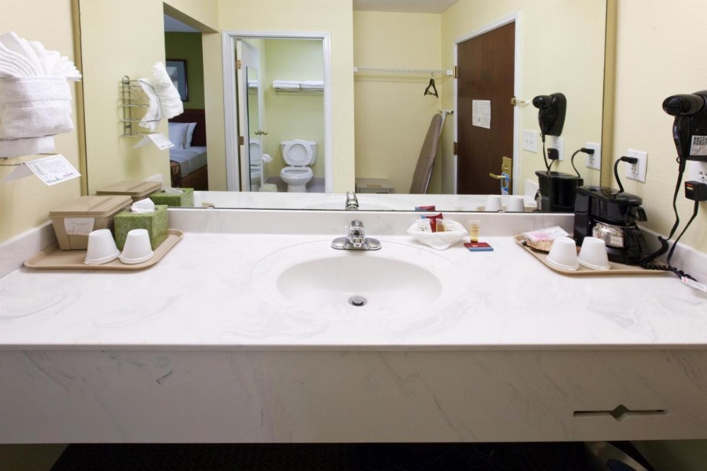 This suite comes with microwave and refrigerator as well as an additional sink and counter space with cabinets.